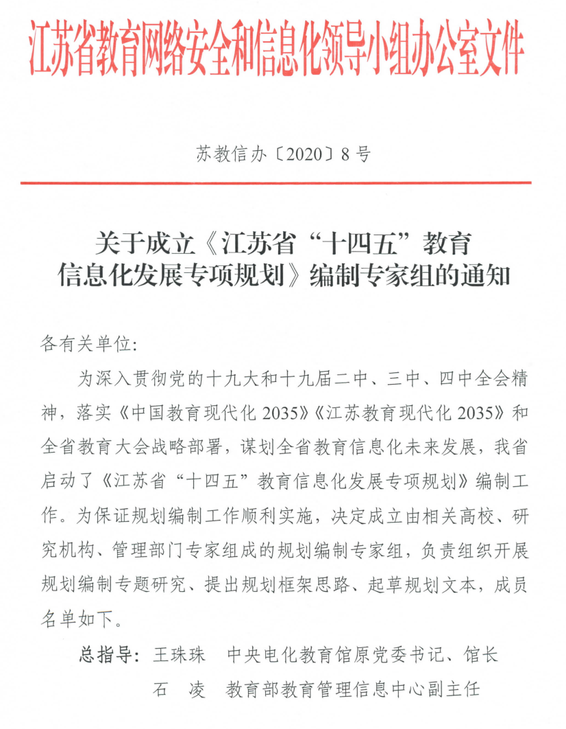 附:《江苏省“十四五”教育信息化发展专项规划》编制专家组的通知