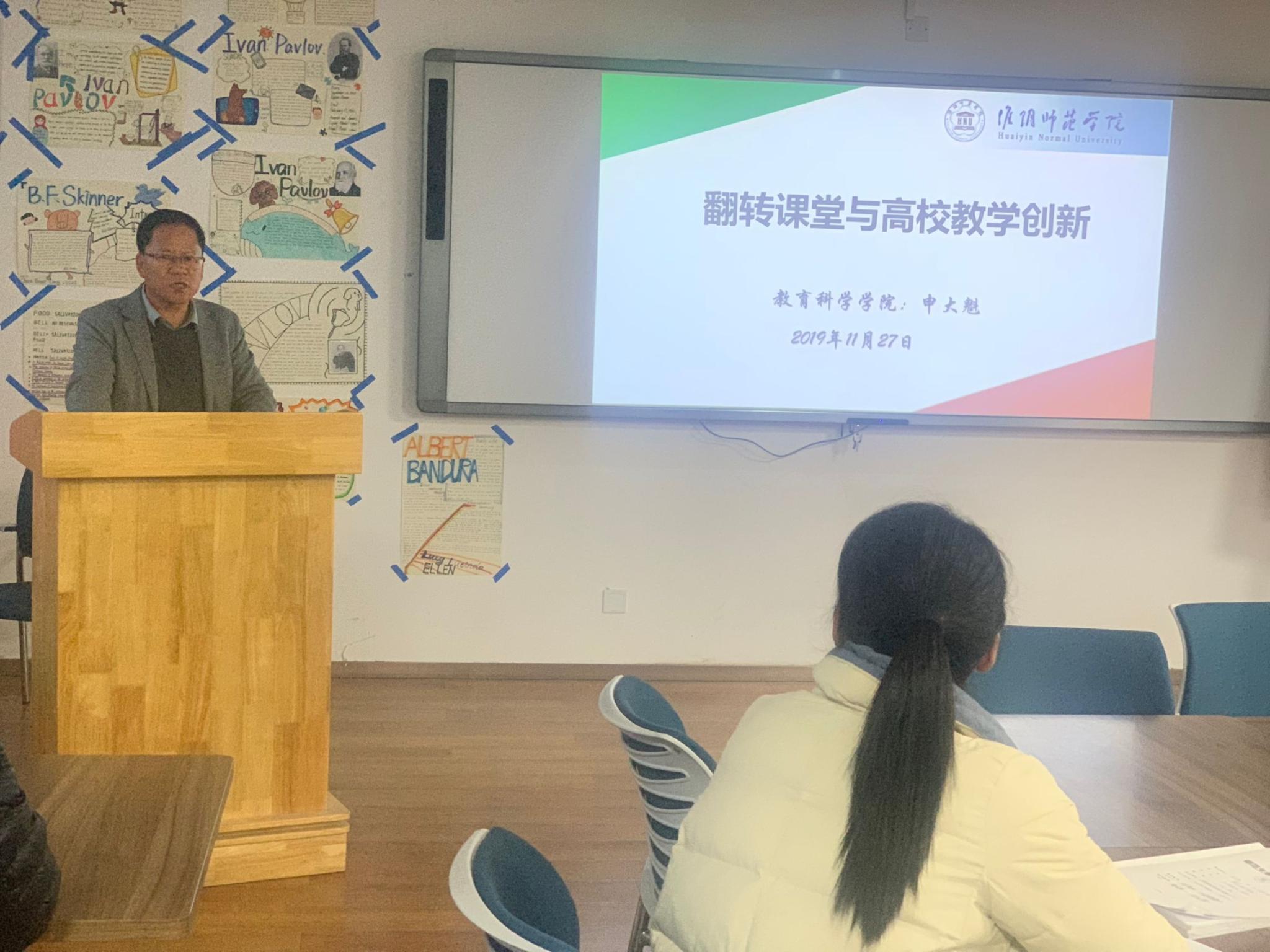 教科网12月5日电(记者 赵影)近日,教育科学学院申大魁老师面向学院青年教师举办了一场题为“基于深度学习的翻转课堂教学模式研究与实践”的教学沙龙活动。