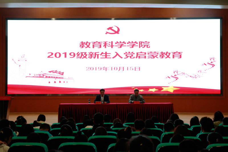 教科网10月16日电(记者 董倩倩 肖箫 周梁阳光)为加强新生对入党相关知识的了解,强化入党意识,10月15日晚,royal皇家88平台教育科学学院邀请校关工委常务副主任王家云教授于崇文阶106报告厅开展2019级新生入党启蒙教育讲座。此次讲座由教科院党委副书记滕祥主持,教科院2019级全体学生参加。