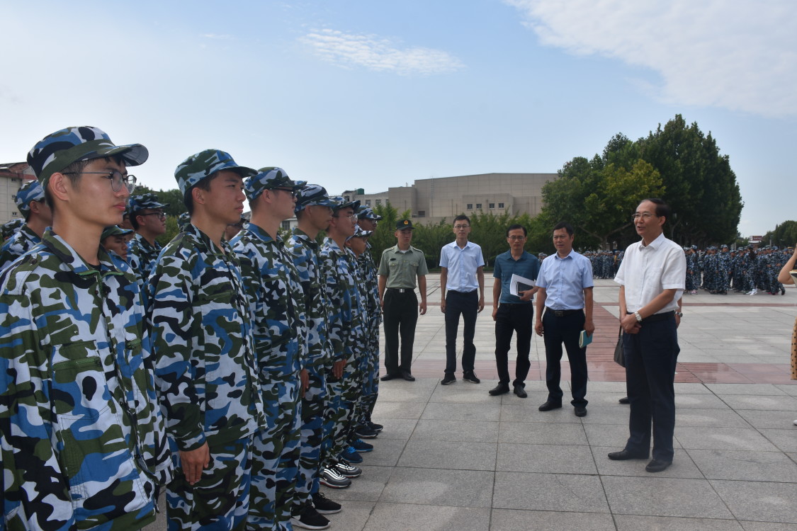 图为校领导亲临教科院军训场地视察新生军训现场。记者 华夏雨 摄