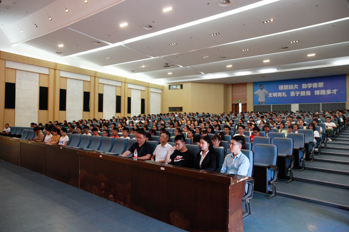 学院党委周友士书记就新生如何度过大学四年的学习生活,进而实现人生目标提出了几点建议:一是要培养兴趣,热爱自己所学的专业;二是要树立理想,开启未来人生新的航程;三是要严于律己,自觉遵守学校的规章制度;四是要身心兼修,保持健康心态。他希望2019级新生能在学业之余,培养勤俭节约、热爱自然、关心时事、身心强健、豁达开朗等更符合时代需求的优良品质。