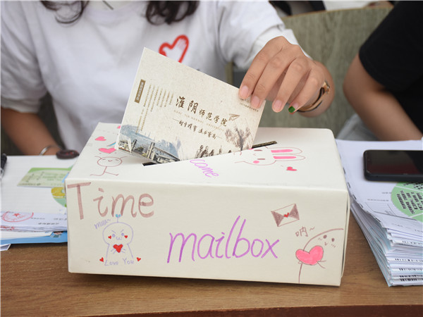当迎新的帐篷、举牌的志愿者迎上陆陆续续踏入淮师校门的稚嫩面孔,一波来自学长学姐的关怀在教科萌发。为了迎接新生,学院从迎新创意到迎新服务做足了准备。新生班主任和学生干部提前返校,学院召开专题会议布置迎新工作;学院贴心送出的材料袋,包含了承载四年的时光表、学院领导的联系方式和宿舍号;玩偶服的出现,学长学姐书画作品的现场展示,为新生展现教科风采。一名来自贵州的新生收到一封神秘信函,据悉,这是来自2019届毕业生、班助等学长学姐的贴心祝福,他读后感触到“几届教科学子的心是连在一起的”,并写下自己对未来的憧憬投入“时光胶囊”。