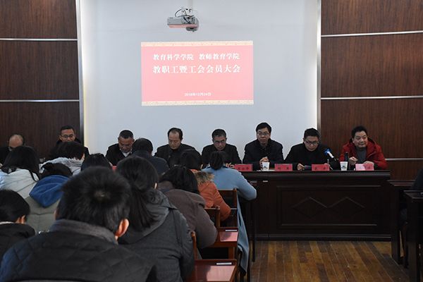 院分工会主席王聿泼表示2018年度工会会员在政治理论学习、思想建设、学院学科专业建设等方面硕果累累,分工会在一年中切实维护广大会员的合法权益,推进了教育科学学院、教师教育学院民主政治建设,并荣获省级“工人先锋号”称号。