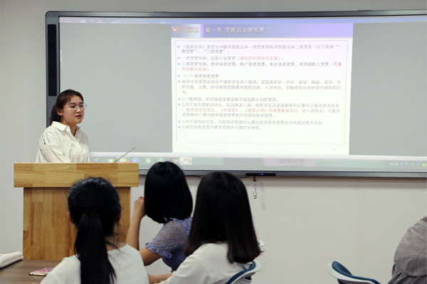 资助部张彦为参加的学生讲解助学贷款的合同变更、贷款还款的相关事宜。助学贷款的合同变更分为就学信息变更、还款计划变更、账户信息变更、身份信息变更、共同借款人变更,张彦讲解如何进行变更,强调以上5种变更,都需要借款学生或共同借款人任一方到县级资助中心办理有关变更手续,并向县级资助中心提交相关证明材料,同时签署变更单。