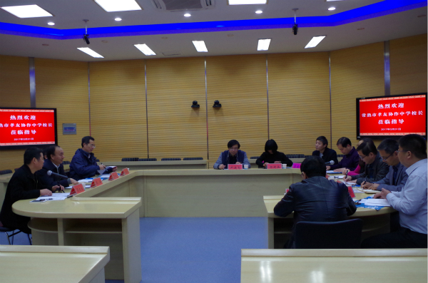 教科网4月2日电(记者 黄莺 华晓亚 刘铭)3月31日下午,常熟市孝友协作中学校长朱小贤一行莅临教科院参观考察,就基础教育研究问题开展研讨会议。royal皇家88平台副校长周军、江苏省清江中学校长王应标、教科院院长蒋亦华、教科院党委书记周友士在智慧教室陪同交流。