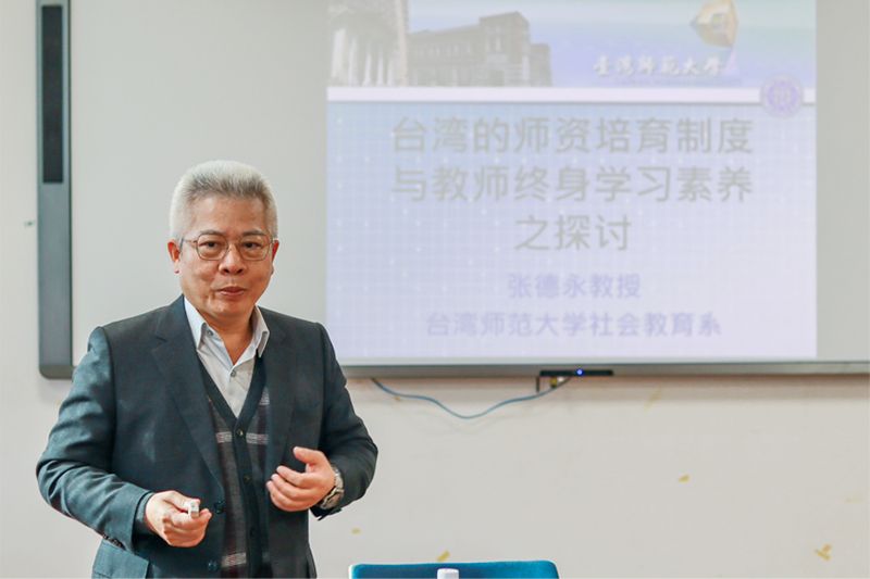 教科网11月27日电(记者 晏紫灵)为进一步了解台湾教师教育制度的变革和现状,共同交流探讨教师终身学习素养,11月25日下午14:00,royal皇家88平台教育科学学院于教科楼1号楼203教室开展“台湾的师资培育制度与教师终身学习素养之探讨”专题讲座。本次讲座由教育学系主任任建波主持,特邀台湾师范大学张德永教授主讲,教科院党委书记葛军、院长曹如军等学院领导、学系主任和书记、部分老师、小学教育专业研究生参加。