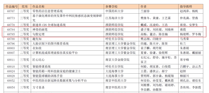 教科网8月28日电(记者 杨绪辉)2020年8月27日,中国大学生计算机设计大赛组织委员会发布了“2020年(第13届)中国大学生计算机设计大赛”获奖名单,在8月17日-19日“微课与教学辅助类”国赛线上决赛中,教育技术学系学生盛子豫、刘欣媛和刘晓林的作品《神奇的画笔》(指导教师:蒋霞),以及高畅、董洁和陈佳楠的作品《勾股定理》(指导教师:杨绪辉、罗冬梅)均取得了二等奖的喜人成绩。