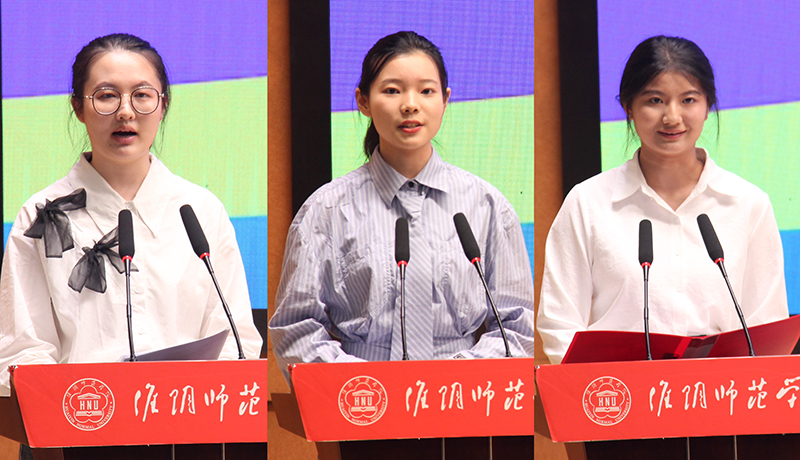 2205班倪好同学作为老生代表发言,她向同学们分享了“认清自我、勤奋学习、勇于尝试”三个感悟,激励学弟学妹们要以积极的心态和不懈的努力在淮师绽放出属于自己的光彩。2024级梁雨轩同学作为本科生新生代表发言,她表达了自己进入淮师教科院的喜悦心情,分享了自己对大学生活的期待和期望,勉励大家都能成为志存高远、脚踏实地、崇尚德行的优秀大学生。