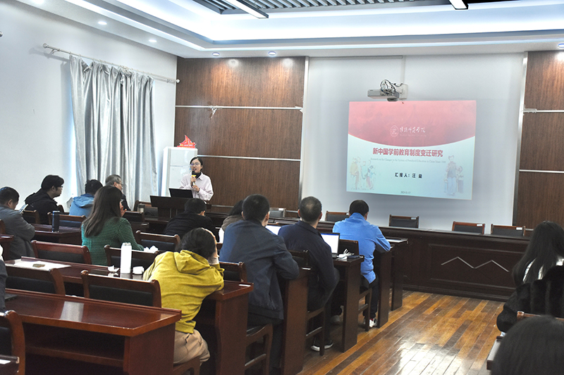 最后,汪益分享了“新中国学前教育制度变迁研究”,他明确指出了学前教育发展的现实呼唤,提出了“新中国学前教育制度是如何变迁”的问题,并结合自身经历点明了其现实意义。