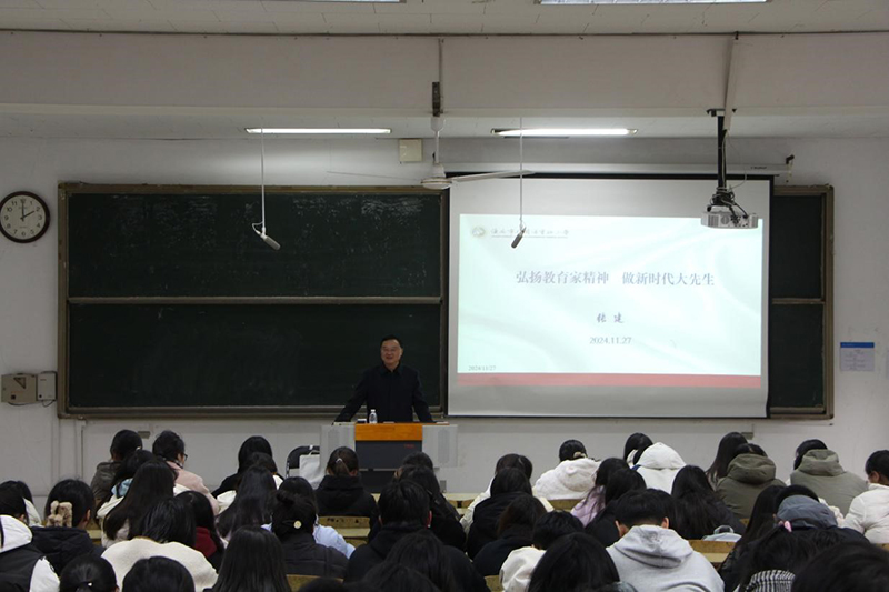 教科网11月28日电(记者 吴悦 刘靖鑫)11月27日下午,royal皇家88平台教育科学学院于崇文楼阶102教室举办了 “弘扬教育家精神 做新时代大先生”的主题讲座,主讲嘉宾为淮安市外国语实验小学书记、正高级教师张建。本次讲座由教科院副院长杨绪辉主持,2024级和部分2023级小学教育专业学生参加。