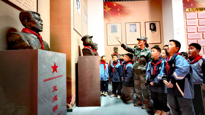 活动中,小学教育专业大学生们创新采用“情景课堂”教学模式,在纪念馆内为留守儿童生动演绎抗日英雄的故事。在抗战文物展区,退役大学生士兵赛山古丽指着一支锈迹斑斑的老式步枪,深情讲述:“这支枪曾经属于一位抗日小战士,他和雨来一样勇敢。在一次战斗中,他一个人击毙了7个敌人……”孩子们听得入神,仿佛穿越时空回到了那段烽火岁月。