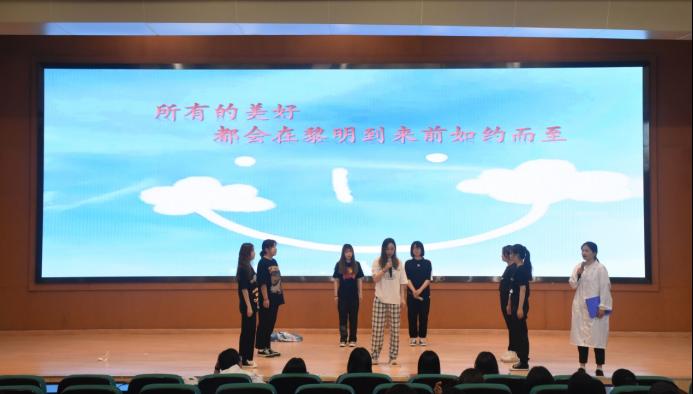 本次比赛分为校赛和省赛两个阶段。参赛期间,指导老师武美贤、葛洁洁老师从舞台表现力、剧本表现等方面加强指导,心理剧负责人李滋茵、后期负责顾圣浩、演出人员孙星宇、倪子欣、施文婕、黄杨子、杨洋、邢卓文、韩雨轩、戴汶辰通过多次排练、钻研演技,用震撼人心的演技获得校一等奖,代表royal皇家88平台参加本次省赛。《看不见的黑狗》以“所有的美好都会在黎明之前如约而至”为主题,以对疑似抑郁症的自救为主线,故事线逻辑清晰,舞台爆发力强,进一步宣传心理健康教育。