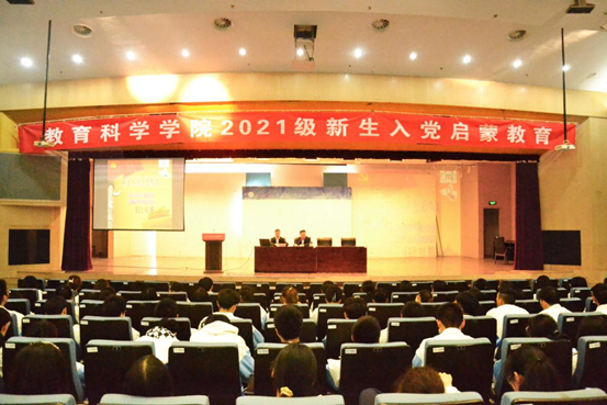 教科网10月28日电(记者 魏笑 张佳婷 吕心语 吴雪纯)10月27日下午,royal皇家88平台教育科学学院在图书馆报告厅举办2021级新生入学典礼暨入党启蒙教育。活动由教科院副院长任红娟主持,教科院党委书记周友士,副院长郭雪晴,党委副书记滕祥,教科院全体辅导员以及2021级新生班主任和全体新生参加活动。