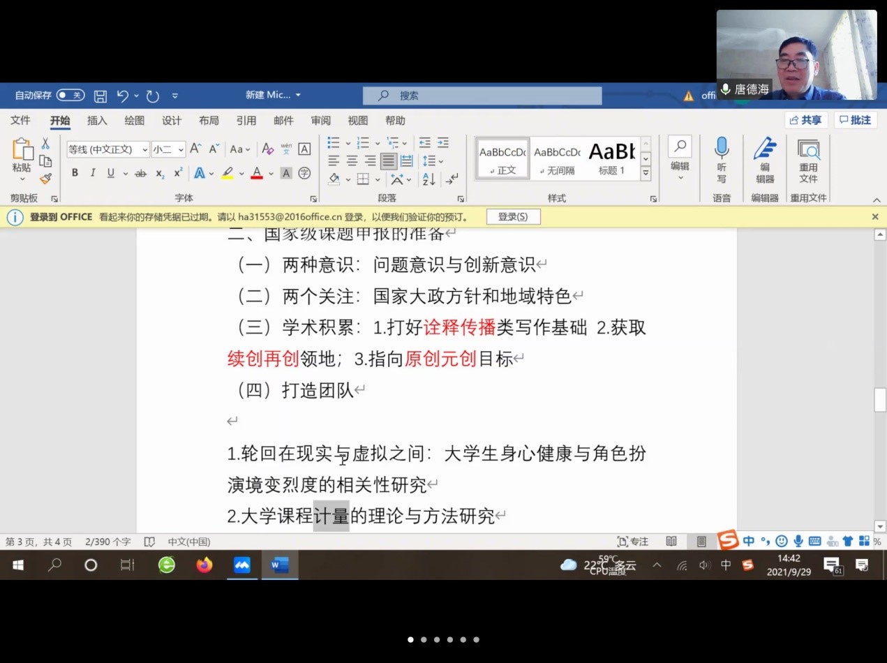 教科网9月30日电(记者 吴雪纯 肖妍梅)9月29日下午,royal皇家88平台教育科学学院特邀广西民族大学教育学教授、博士生导师唐德海,作题为“教育学专业教师如何申报国家自科基金项目”的线上专题讲座。本次讲座由教科院院长曹如军主持,教科院全体教师参加。