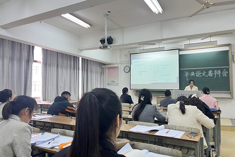 在每个答辩组内,老师们凭借丰富的学术经验和敏锐的专业思维,结合每位学生的论文内容,提出了富有深度和启发性的问题,这些问题不仅考验了学生们的学术水平及应变能力,更能引领他们进一步思考研究的意义。在提问之后,老师们还指出了每位学生论文的优缺点,并对学生们的论文提出了宝贵的建议,帮助大家梳理研究思路,同时也激发了学生们未来对学术探索的新灵感。在严肃的问答之余,评委老师的幽默点评也缓和了紧张的气氛。答辩会结束后,各答辩组的组长都根据本组的答辩情况,对整场的答辩情况进行了总结,祝贺大家顺利完成答辩任务,展现了高翻学子应有的风采,同时也要求学生们根据答辩老师的问题和建议,进一步打磨论文,力争做到精益求精。