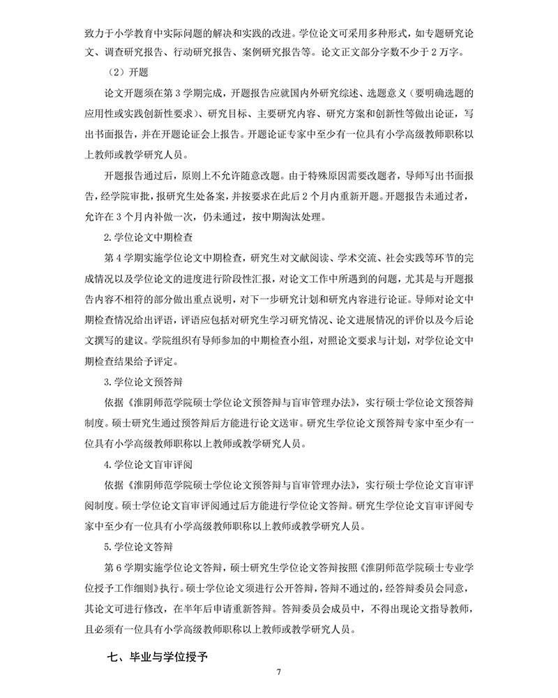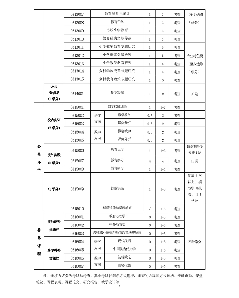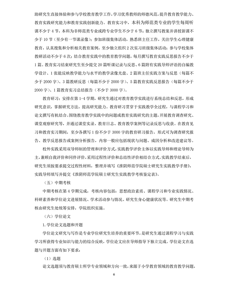 全日制教育硕士专业学位(小学教育)研究生培养方案