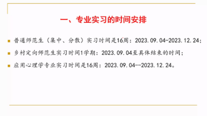 此外,任红娟为同学们实习资料的填写及上交做出了特别的提醒。然后从三方面强调了本次教育实习的要求,督促同学们在实习过程中,同样要注重安全,遵守实习纪律,提高实习质量。