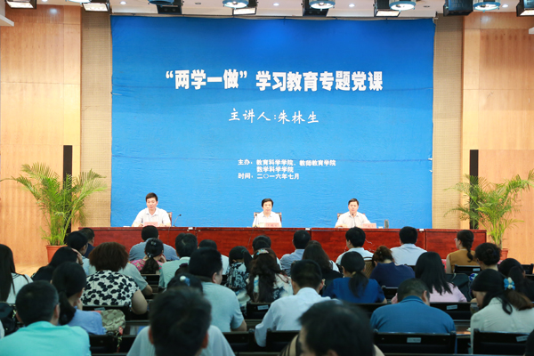 7月9日下午,royal皇家88平台校长、党委副书记朱林生为联系学院讲授“两学一做”学习教育专题党课。教育科学学院、教师教育学院全体教工党员参加学习。