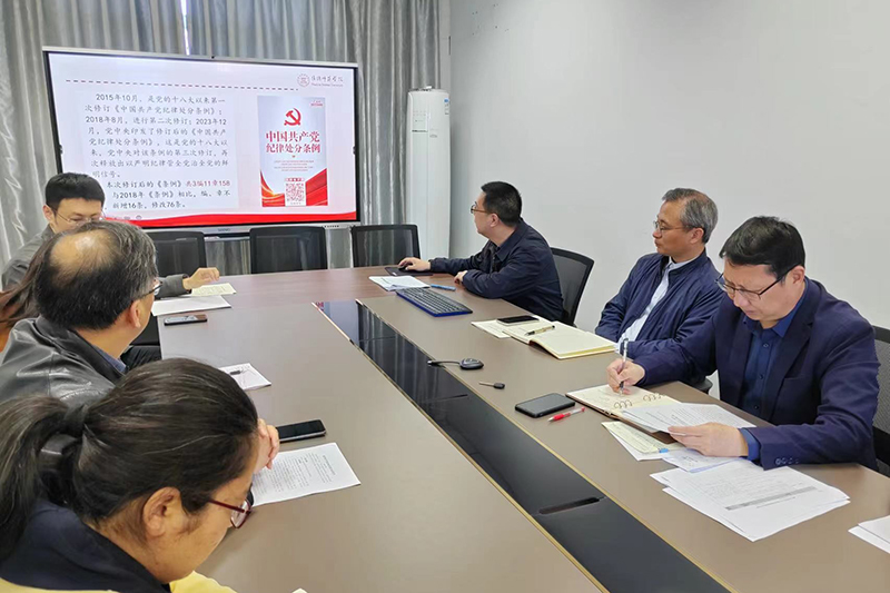 会议学习《中国共产党纪律处分条例》的相关内容,会议由副院长杨绪辉同志领学。