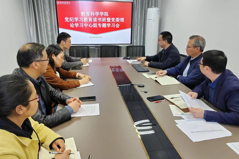 教科网4月26日电(记者 张菁菁)为进一步加强党的纪律建设,提升党员干部的纪律意识和党性修养,教育科学学院党委理论中心组于4月24日下午在教科院1-409会议室举行了党纪学习教育专题学习会。会议由学院党委书记葛军主持,学院党委委员及各支部书记出席了本次会议。