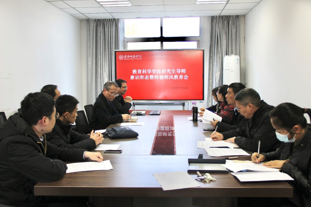 教科网11月23日电(记者 杨可)为深入学习贯彻党的二十大精神,全面落实研究生导师立德树人根本任务,加强师德师风建设,11月22日下午2点,royal皇家88平台教育科学学院于教科1号楼409召开研究生导师意识形态暨师德师风教育会。会议由教科院院长曹如军主持,全体硕士研究生导师参会。