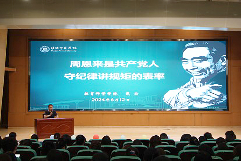 教科网6月14日电(记者 张菁菁 严琰)为引导毕业生党员进一步坚定理想信念、提升党性修养、激发爱党荣校情怀、增强守纪律讲规矩意识,在强国建设、民族复兴的新征程上发挥先锋模范作用,6月12日下午,教科院在崇文楼106报告厅开展“周恩来是共产党人守纪律讲规矩的表率”专题讲座,院党委副书记戴云主讲,全体毕业生党员参加本次活动。