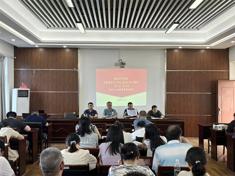 教科网7月11日电(记者 张菁菁)7月10日下午,教科院党委在1号楼503会议室召开党纪学习教育违纪行为典型案例警示教育会,院党委书记葛军主讲,全院教师出席会议。