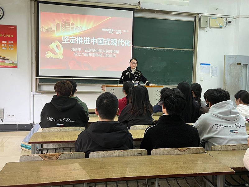 教科网10月22日电(记者 包月欣)2024年10月22日下午,为庆祝中华人民共和国成立75周年,并深入学习习近平总书记在国庆招待会上的重要讲话精神,教科院学生第一党支部开展了一次别开生面的主题党日活动。活动于崇文楼1-106教室开展,由支部书记顾伊荻主持。