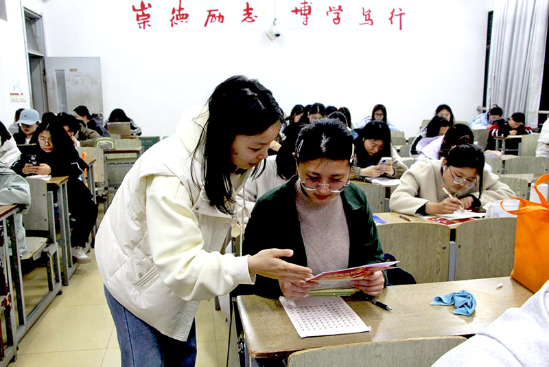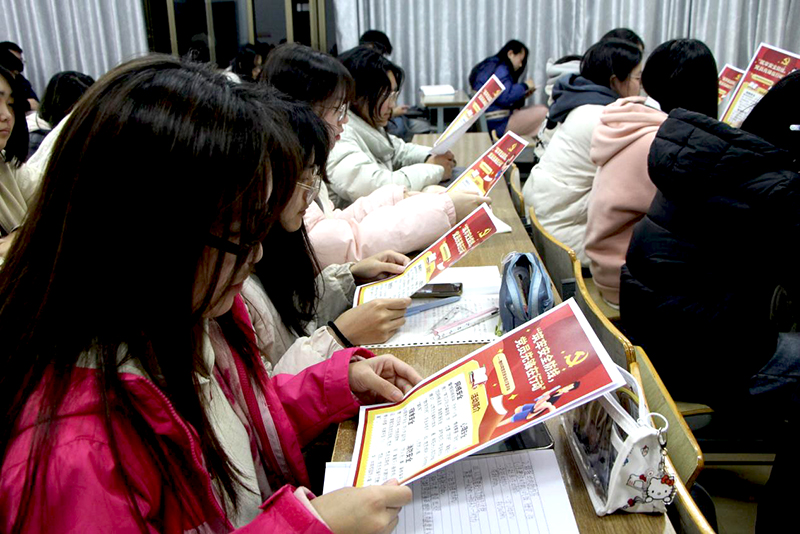 随后,教科院学生党员代表深入班级开展安全知识宣讲。宣讲伊始,党员宣讲员向各班同学发放宣传海报及调查问卷。而后教科院学生第二党支部党员代表莫雅玟同学面向2401班进行宣讲。她指出,当前大学生安全意识薄弱导致违规用电、交通事故、诈骗案件频发,60%的高校安全事故源于此。她呼吁同学们掌握防诈骗、应急逃生等技能,并建议班级党团代表牵头成立安全小组,定期排查隐患、组织演练,推动安全教育常态化,同时将安全意识融入思政教育及校外实践,构建长效机制。