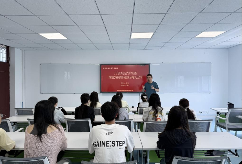 随后,戴云着重分析了违反中央八项规定精神的危害。他通过一些典型案例,生动地揭示了违规行为不仅损害了党的形象,破坏了党群干群关系,还会对个人的成长发展造成严重影响。这让学生党员们深刻认识到,必须时刻保持警醒,严守纪律底线,坚决杜绝任何违反规定的行为。