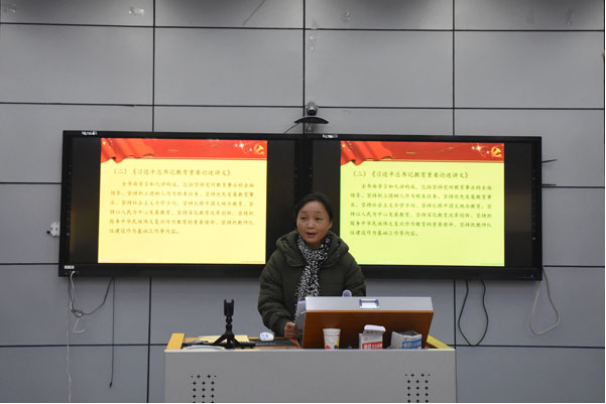 教科院副院长任红娟和文科教学论教研室党支部书记潘友梅,分别以“深入学习贯彻习近平总书记关于教育工作的重要论述 努力推动学院工作更上一个新的台阶”、“从习近平总书记的重要论述领悟中国共产党关于教育的初心使命”为主题进行领学。