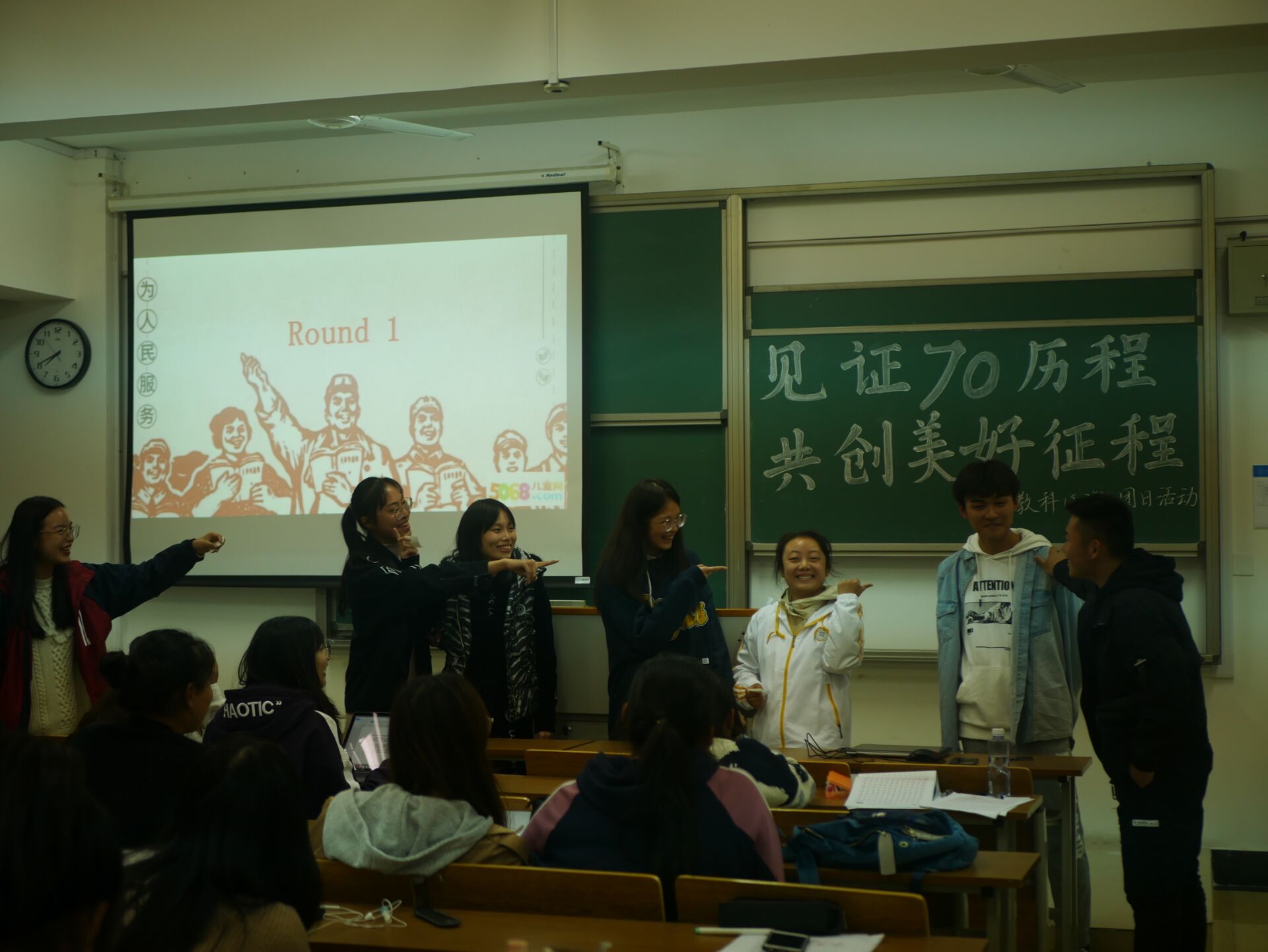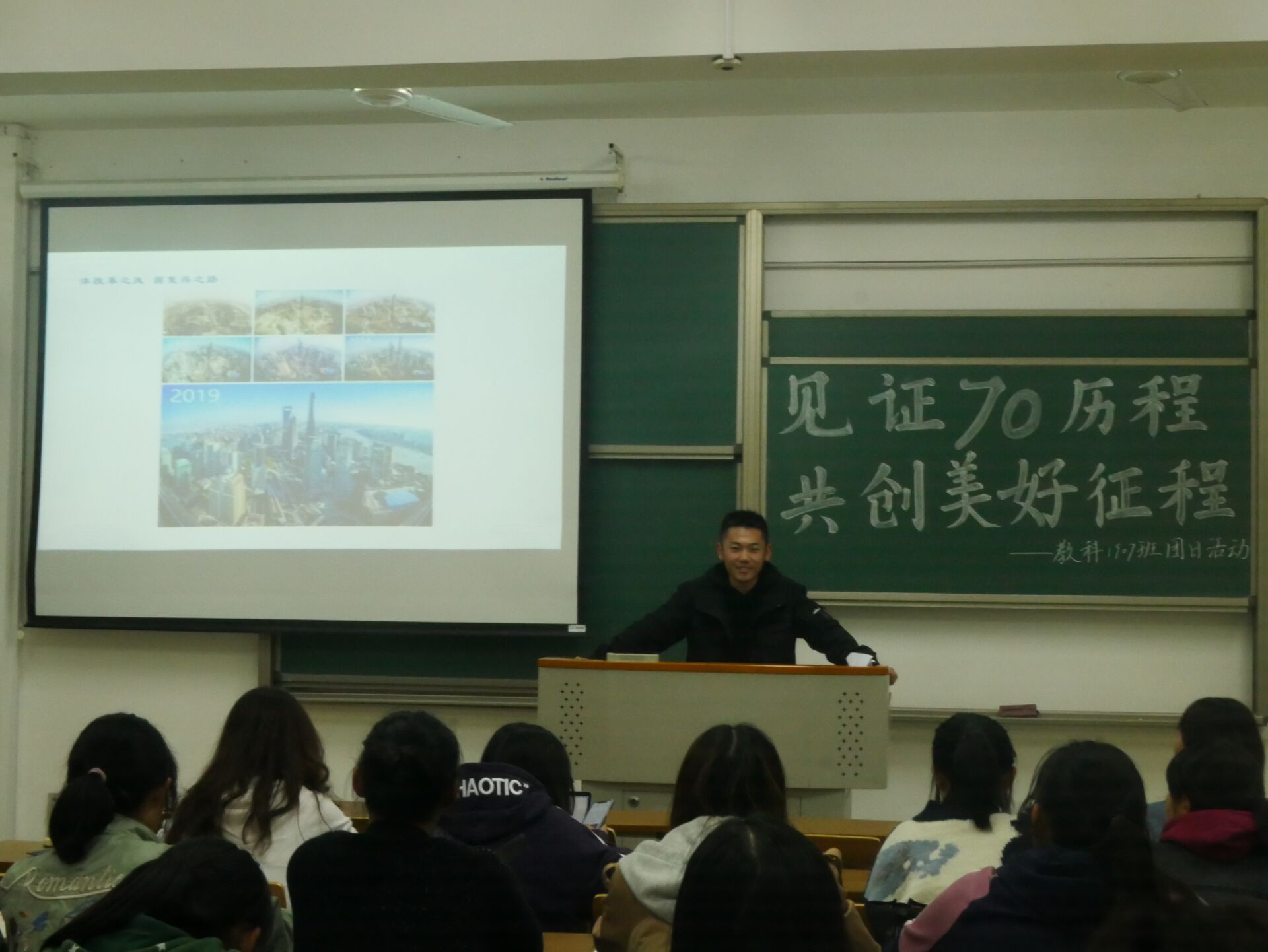 活动伊始,同学们一起回顾了十一阅兵仪式上习近平主席的重要讲话,由此进入团课主题。随后团支书通过一组今昔对比图向团员们详细介绍了新中国70年的艰辛发展史和光辉奋斗史以及改革开放以来国家日渐繁荣、逐渐强大之景。“沐改革之风,圆复兴之路”。从以前的杂乱无章,到如今的秩序井然,无一不诉说了新中国70年历程的巨变,一再发出改革开放的时代强音,让世界看到了中国将改革开放进行到底的决心。随后,通过“谁是真的爱国”的游戏活动加强广大团员对国家标志、国家近况的了解。紧接着的知识竞答、综合时政焦点、团员素质等知识,增强了团员学习积极性。此次团课通过各种互动环节丰富了课堂学习内容,拉近了团员与国家的距离。每一个环节,同学们都踊跃发言,积极参与,使之时刻牢记时代使命,为实现“中国梦”贡献智慧和力量。