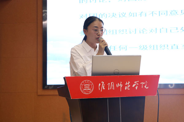 教科网9月30日电 (记者 金宇石 刘彤蕾 周梁阳光)七十载沧桑巨变,七十载壮丽征程,为庆祝中华人民共和国成立70周年,进一步加强新生团员的政治思想观念,增强团员对团组织的深刻认识。9月26日晚,教科院团委于崇文楼报告厅召开2019级新生“领航·开学第一节团课”,主讲人为教科院团委书记顾伊荻。