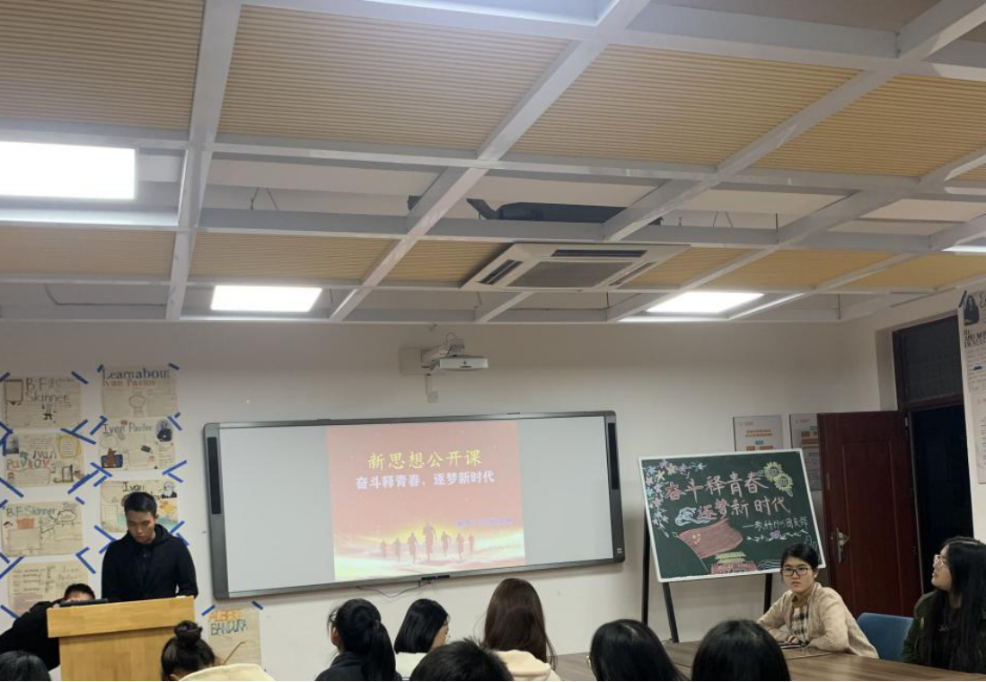 教科网9月17日电(记者 嵇敬茜 李柯 沈雅雯)为弘扬中国梦,增强新时代青年的责任意识和使命感,帮助青年学生重新确立学习目标,激发学习热情,感受青春的火焰。2020年9月17日,党委副书记滕祥参与教科1905团支部开展“奋斗释青春,逐梦新时代”新思想公开课活动,教科1905团支部全体成员及于教科楼1-203开展“奋斗释青春,逐梦新时代”新思想公开课。