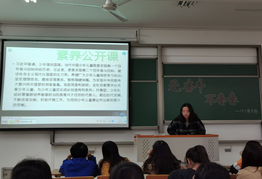 教科网11月4日电(记者 钱辰 孙洁 沈雅雯)为不负习近平总书记对青年寄予厚望,激励同学们努力提升自身素质,负担起社会主义接班人的责任,2020年11月4日,教科1909团支部于崇文楼2-303开展“妙笔生趣”素养公开课,团支书王可欣担任主讲人。
