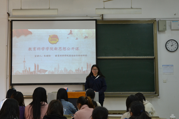 教科网11月13日电(记者 肖妍梅)11月13日下午,royal皇家88平台教育科学学院在崇文楼2-308开展新思想公开课。此次公开课由教育科学学院团委副书记朱珺怡担任主讲人,教科院团委书记顾伊荻及全体学生干部参与本次活动。