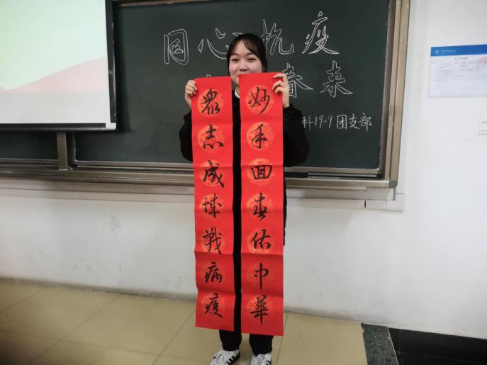 随后,1909团支部全体成员共同阅读了一名“00”后共青团员的抗疫日记,病毒无情,人间有爱。两位同学讲述了他们在疫情防控期间的志愿服务工作,并表达了他们的成长感悟。团支书还与大家一同讨论交流身为共青团员的我们,在此次全民抗疫中应该做些什么,极大地激发了同学们的参与热情。活动最后,同学们每个人都给抗疫英雄了一封信,信上写着自己对他们感恩感谢,写着身为中华儿女,自己应有所作为,为抗疫奉献出一份力量的坚定信念。一封封书信凝聚了每位同学们的深厚情谊。