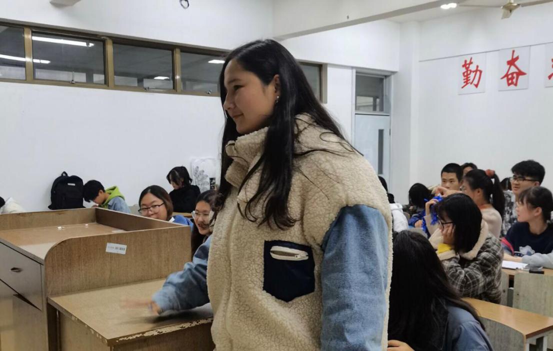 图为阿依姆妮萨·艾萨同学参与游戏。记者 宋徐贵 摄
