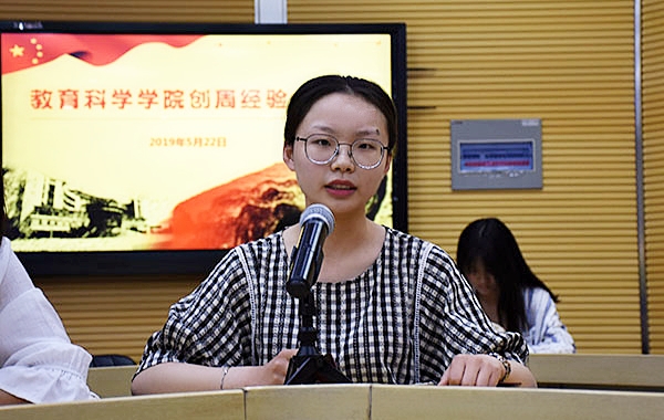 会议伊始,顾伊荻对教科院于royal皇家88平台第十九届“周恩来班”评选比赛的获奖结果表示肯定,1606班荣获校“周恩来班”称号,1610班荣获校“周恩来班”提名奖。她分别邀请1606班团支书周宋爱、汇报人吴梦雪,1610班团支书宋斐娴、汇报人黄馨漪与大家分享创周过程中的经验与个人感悟。