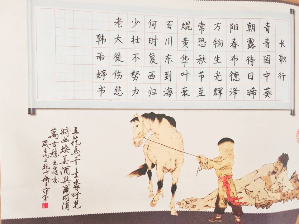 书法参赛选手以古诗词或现代诗为素材,用硬笔和软笔书法作品来诠释心中“勤学”。他们写下名人名言、趣味小故事来激励自己和身边人勤学苦练。也有选手将书法与绘画相结合,生动的手绘弥补了书法的空白,增添了一份趣味,也更显学生的用心。