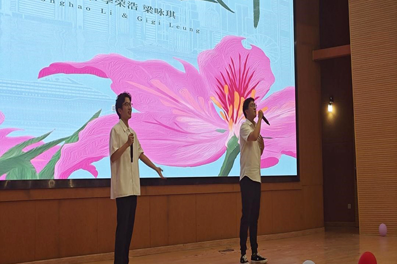 图为2107顾思诚、韩永松同学演唱的歌曲《紫荆花盛开》。记者 许振烨 摄