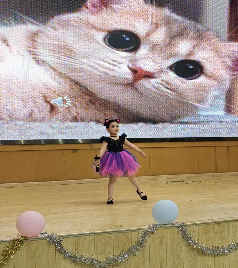 图为特邀小嘉宾嵇沐妍演唱的歌曲《小甜猫》。记者 朱依洁 摄
