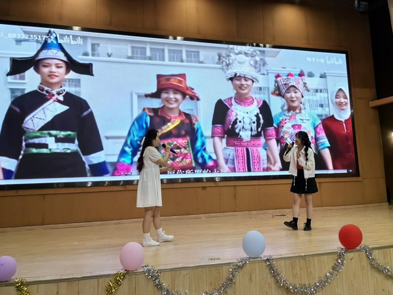 图为2101张可兴、2106张迎同学演唱的歌曲《如愿》。记者 朱依洁 摄