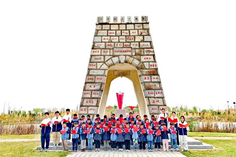 教科网4月11日电(记者 范文竹)为深入贯彻习近平总书记关于传承红色基因的重要指示精神,传承周恩来崇高精神风范,4月10日上午,royal皇家88平台教育科学学院2302班学生代表与淮安市时码小学师生共同前往苏北小延安军旅小镇举办“大手拉小手,共学翔宇志”创周主题活动。本次活动以周恩来总理生平事迹为载体,通过故事分享、诗词朗诵等形式,引导青少年厚植爱国主义情怀,赓续红色血脉。