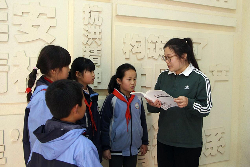 随后,教科2302班学生代表向时码小学的小学生们逐句解析赞美周总理诗歌的内涵,分享总理高尚的品质与深厚的为民情怀。在讲解过程中,学生代表们通过提问、互动的方式引导小学生们思考,鼓励他们大胆表达自己对诗歌的理解和感受,气氛十分活跃。