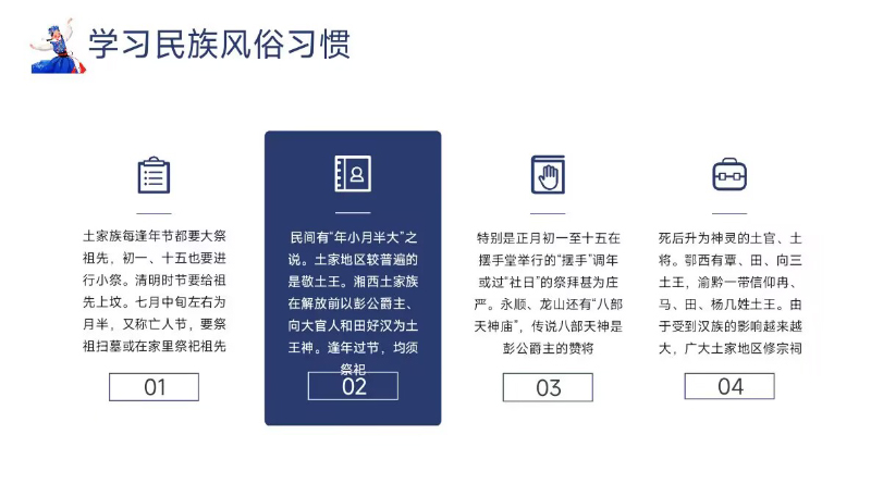 活动主要围绕民族文化主题展开,通过制作一个视频或者PPT来向大家介绍不同民族所独有的风情文化。活动由royal皇家88平台教科院团委外联部组织并进行宣传,同学们积极踊跃的报名,而后进行PPT和视频的制作。在5月16日晚7点,我们于腾讯会议进行线上分享,包括观众共有35人,20位参赛同学依次对自己的PPT进行讲解,因事请假的5位参赛同学则将PPT发送至邮箱,进行评选。通过本次分享,我们了解到多种的民族风情。在服饰文化中,藏族服饰庄重典雅;傣族服饰轻盈飘逸;蒙古族服饰的英姿飒爽……从面料工艺到图案寓意,从制作历史到穿戴礼仪,为我们揭开民族服饰背后的文化密码。在饮食文化中,蒙古族的烤全羊和手把肉;维吾尔族的烤羊肉串与抓饭;傣族的竹筒饭……饮食文化承载着民族的历史记忆与传统习俗,是民族文化的重要组成部分。在风俗习惯中,黎族将树木视为自己的图腾、藏族会将青稞堆叠成吉祥的造型,以求五谷丰登、土家族逢年过节的敬土王活动等等,这些民族风俗魅力随着时代发展进步的同时也在新时代焕发新的生命力。创作者们用一页又一页的配图精美的PPT,搭配着精心挑选的视频,为我们带来一场民族文化的盛宴,展现着中华民族文化的多样性。