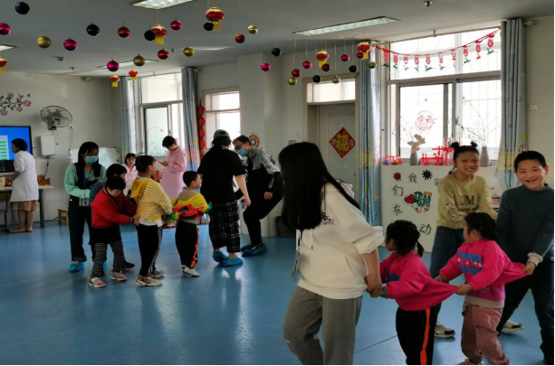 5月8日下午两点,天气炎热,志愿者们不辞辛苦从学校出发,按时到达活动场地。到场后志愿者遵循工作人员的指导,与这些特殊孩子进行互动,带着他们一起玩老鹰捉小鸡、丢手绢等游戏。大手拉着小手,笑脸迎着笑脸,在快乐中志愿者与孩子们愈加亲密。游戏结束后孩子们明显开朗了许多,其中一位小朋友拉着志愿者的衣服说“有姐姐的陪伴真好,最喜欢姐姐了。”随后志愿者给孩子们分发了用义卖得来的钱买来的小礼物,还给这些孩子讲了许多故事:有想象丰富的童话故事,有慷慨激昂的党史故事,还有奇幻瑰丽的神话故事……