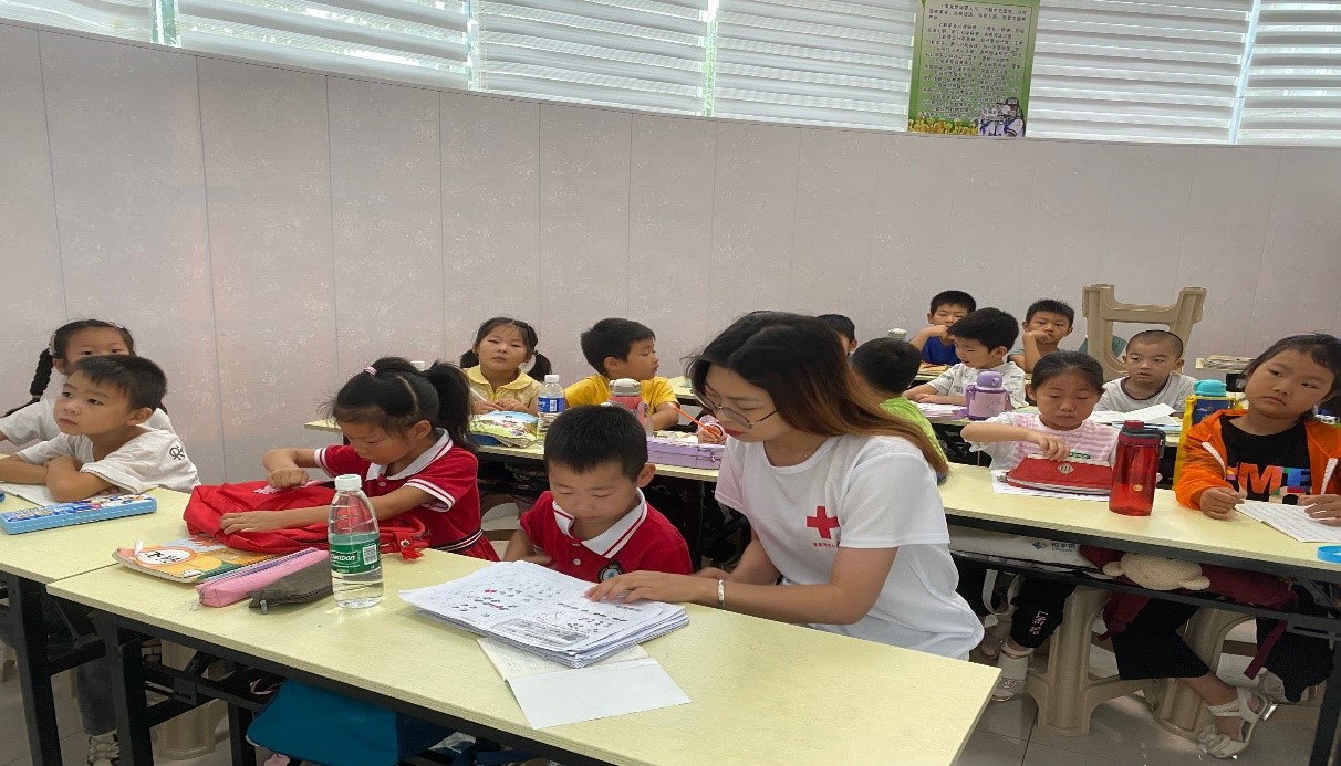 活动中期,志愿者团队的同学们前往相应的场地,对小学生们展开志愿教学工作。志愿者同学们利用自己的专业特长,对小学生们进行绘画、书法、剪纸、等活动的指导教学。在志愿者同学们的指导与帮助下,小学生们在画作和书法等项目上都创作出了自己的优秀作品。志愿者们不仅在课外兴趣方面指导小学生们,还对小学生的语文、数学等科目的进行辅导,志愿者同学运用自己在校所学习的专业技能和自己对于小学课本的理解,对小学生们展开富有趣味性的生动教学。