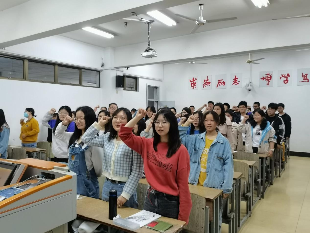 人生需要信仰驱动,社会需要精神引领,发展需要价值导航。同学们在学完党史后,深刻认识到了这一点,坚定了向党学习的决心,并在团支书的带领下,举起右拳,庄严宣誓:永葆党之丹心,践行初心使命。