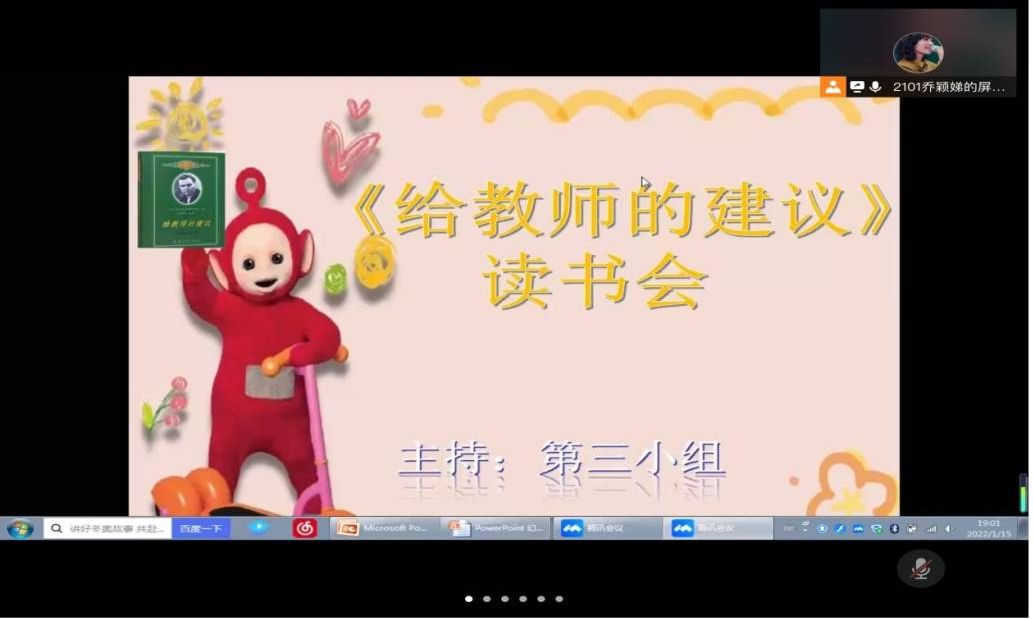 教科网1月16日电(记者 王愉)1月15日晚7点,‘师生共读一本书”第三期阅读分享会在线上展开,参加人员共有42人,分别是班主任史良平老师,2101班41名同学。乔颖娣同学主持分享会。大家围绕苏霍姆林斯基先生的《给教师的建议》分享了各自的阅读体会和思考。